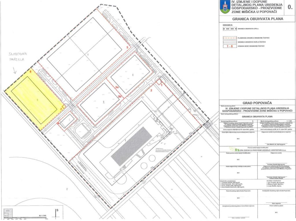Skenirana kopija isječka iz katastarskog plana zone s označenim slobodnim parcelama